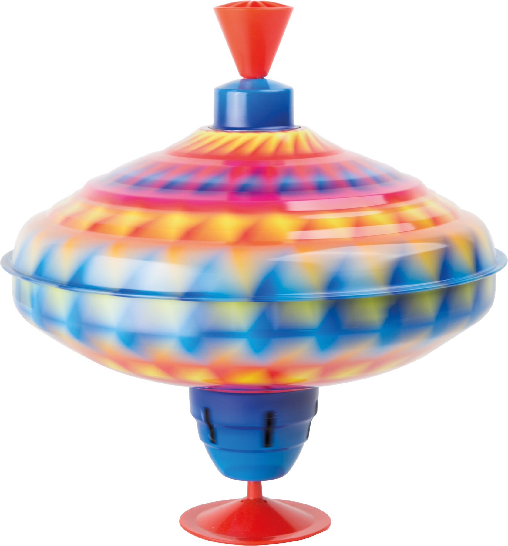 Wer kennt ihn nicht, den Brummkreisel? Ein tolles buntes Blechspielzeug, das sich durch Druck auf den Stiel zu drehen beginnt und ein Brummen ertönen lässt. Durch den Standfuß aus Gummi bleibt er an seinem Platz. Ein tolles Spielzeug für Kinder! Ein Kreisel, der schöne Muster produziert und bei Groß und Klein für Faszination sorgt.