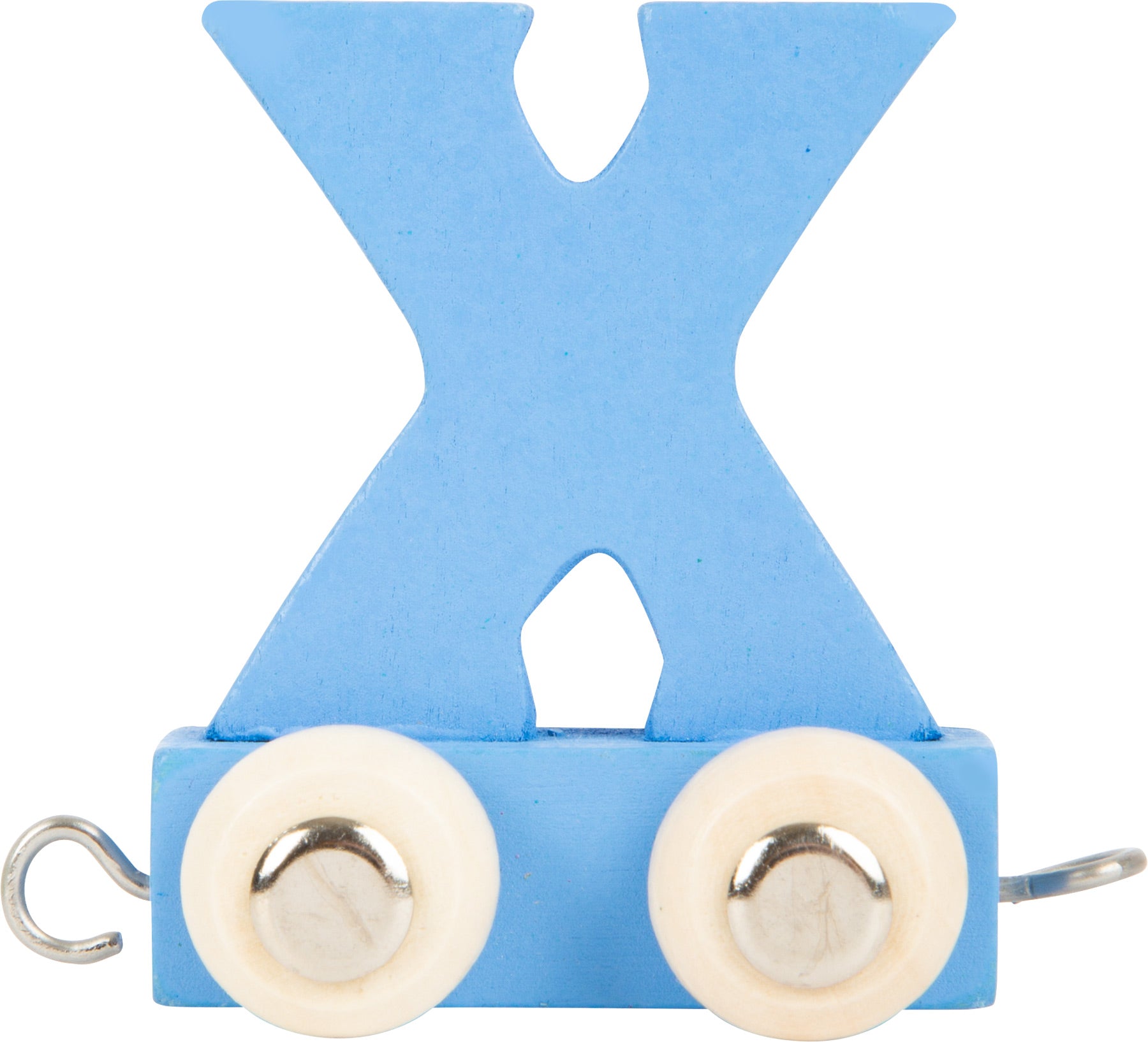 Dieser Holzanhänger mit dem blauen Buchstaben X kann an jeden Namenszug gehängt werden.