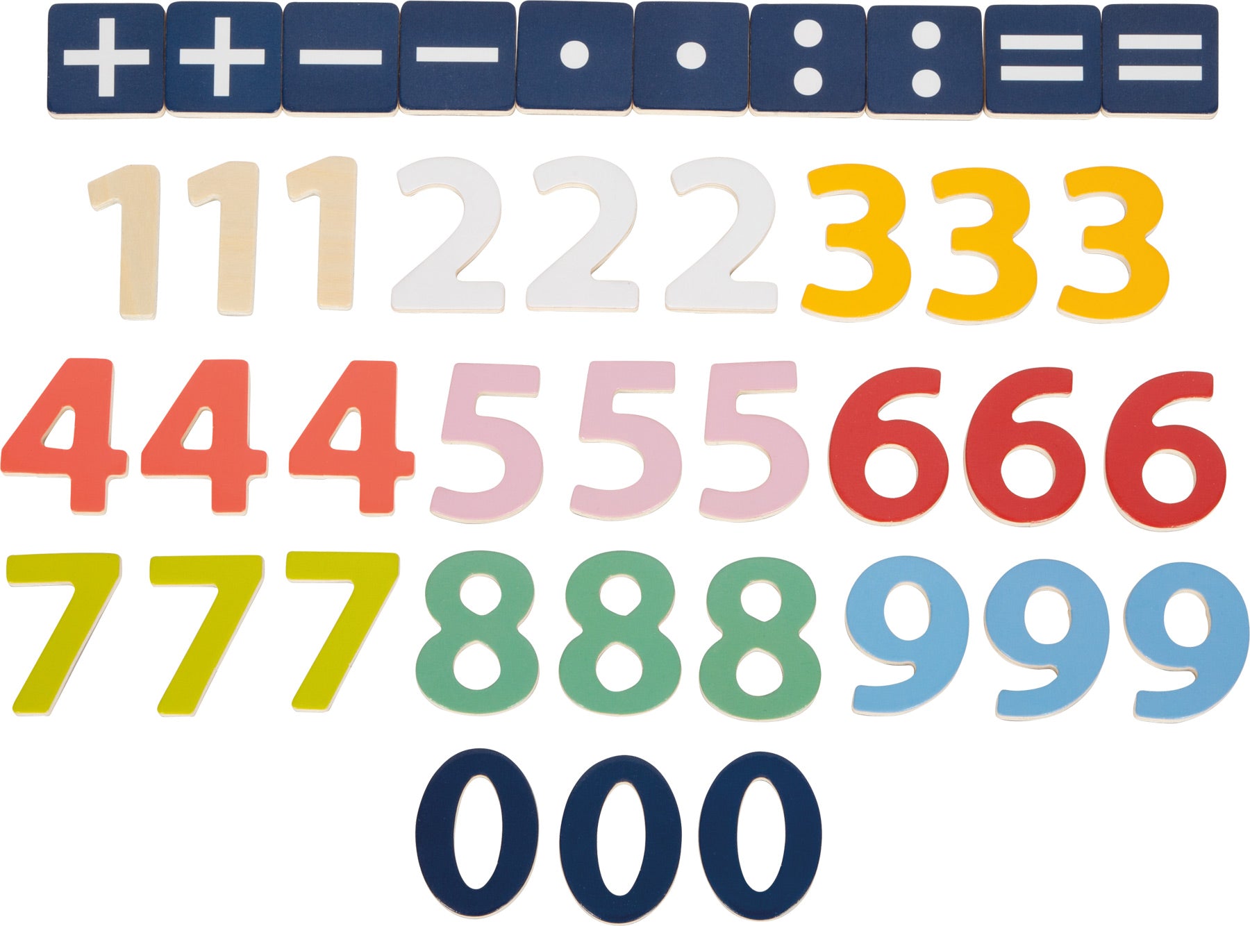 - 📦 Inhalt: 2x Gleichzeichen, 2x Multipikationszeichen, 2x Divisionszeichen, 2x Subtraktionszeichen, 2x Summierungszeichen, 3x Eins, 3x Zwei, 3x Drei, 3x Vier, 3x Fünf, 3x Sechs, 3x Sieben, 3x Acht, 3x Neun, 3x Null