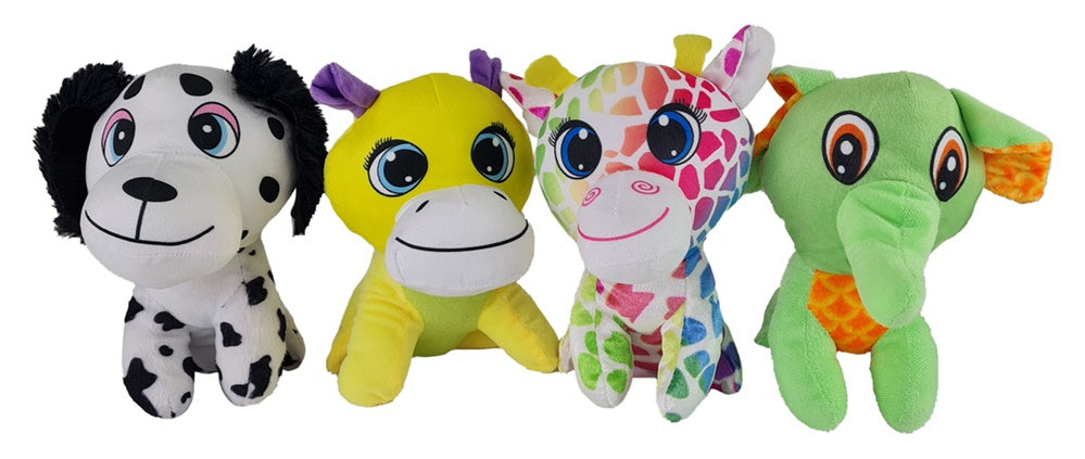 Buntes Plüschtier 4er Set: Hund, Giraffe, Elefant & Esel, 23cm