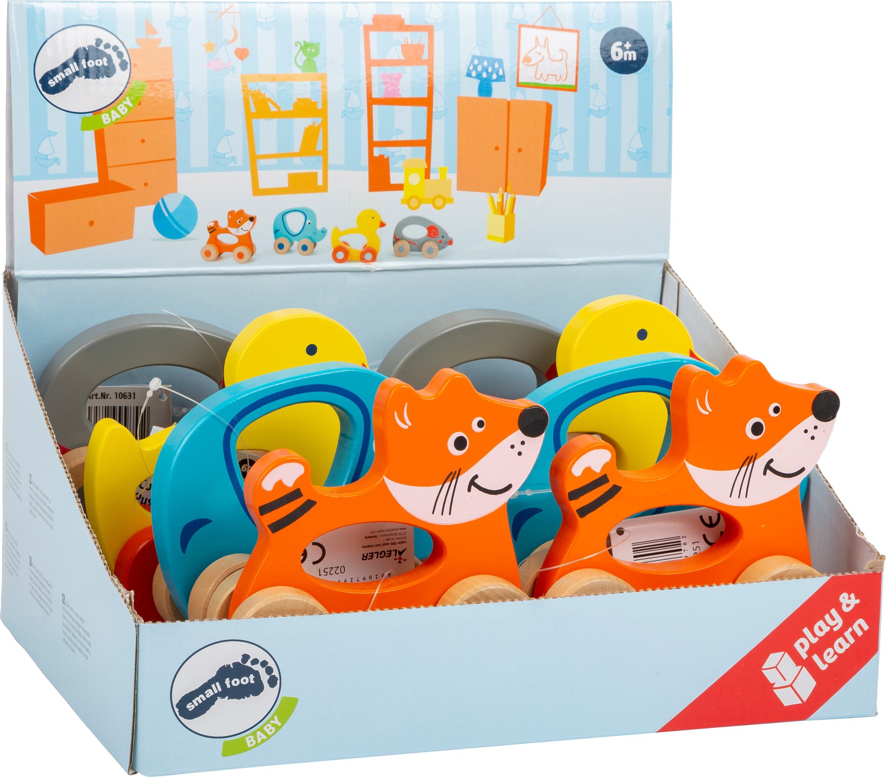 Die 4 farbenfrohen Schiebetiere sind ein echter Hingucker! Elefant, Maus, Ente und Fuchs sind aus robustem Holz und wunderschön bemalt. Na, welcher wird Dein neuer Freund? Große Löcher im Bauch sorgen dafür, dass kleine Kinderhände die niedlichen Tiere gut greifen können. Und dann geht es auf große Fahrt! Die leichtgängigen Rollen laden ein zu rasanten Ausflügen. Ideal als kleine Mitbringsel