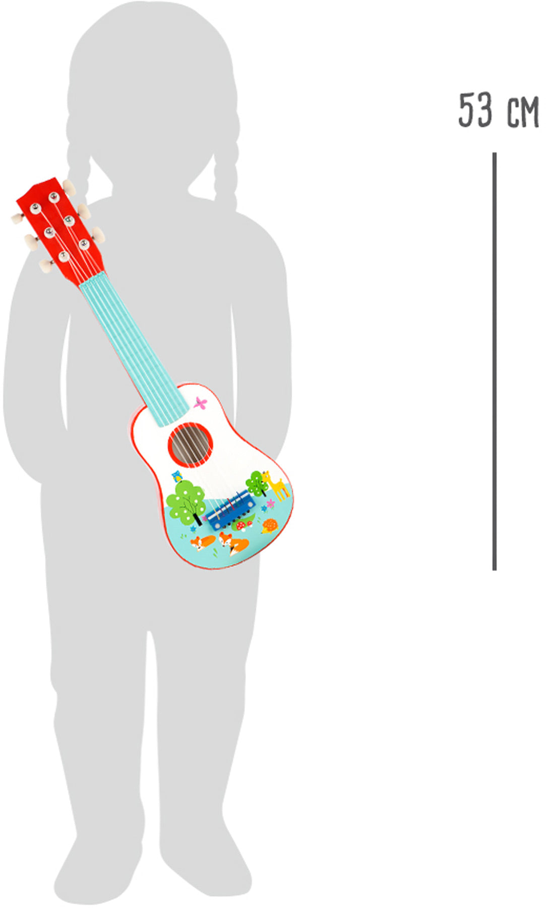 Musiker aufgepasst! Mit dieser Gitarre im Fuchs-Design ist jeder ein Star auf der Bühne. Mit ihr kann das Kinderzimmer gerockt werden. Mit dieser Kindergitarre aus Holz werden Rhythmus- und Taktgefühl geübt. Die sechs Saiten können gezupft oder gestrichen werden, um sanfte oder laute Töne entstehen zu lassen. Ein tolles erstes Musikinstrument für eine musikalische Früherziehung.