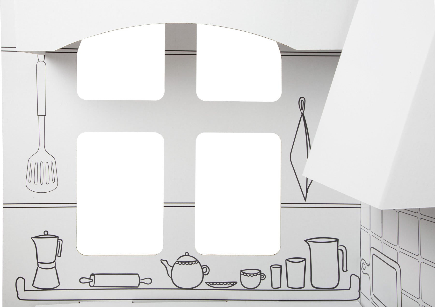 Platz für Fantasie und Kreativität! Diese beeindruckend große Kinderküche aus stabilem Bastelkarton bietet kleinen Sterneköchen den idealen Raum, um ihre kulinarischen Träume auszuleben. Das Besondere: Nach dem schnellen Aufbau lässt sich die gesamte Küche mit Stift und Pinsel ganz individuell und einzigartig gestalten – so wird die Spielküche im Nu zur Kreativwerkstatt!