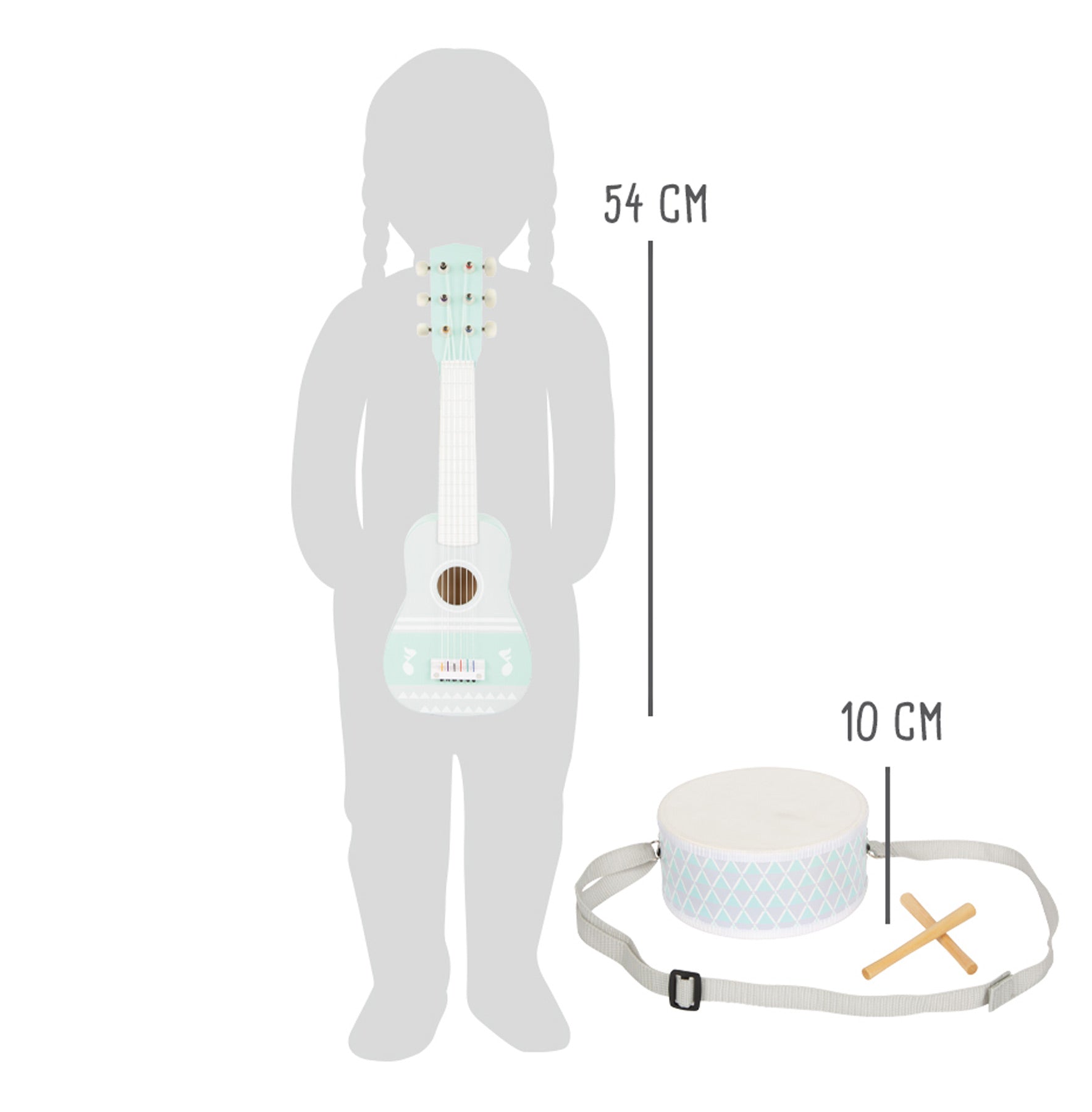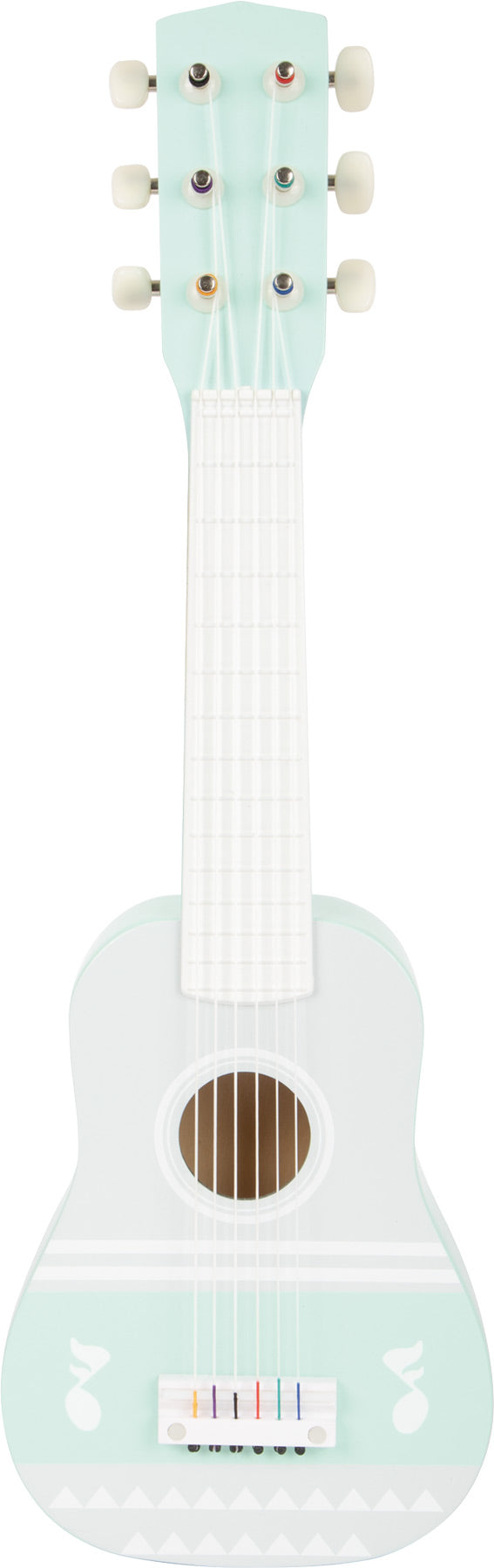 Dank der beiliegenden Notenblätter für Gitarre und Xylophon können erste Melodien direkt ausprobiert werden. Die zarten Pastellfarben und der hohe sichtbare Holzanteil machen die Instrumente nicht nur zu einem musikalischen, sondern auch zu einem optischen Highlight im Kinder- oder Wohnzimmer.