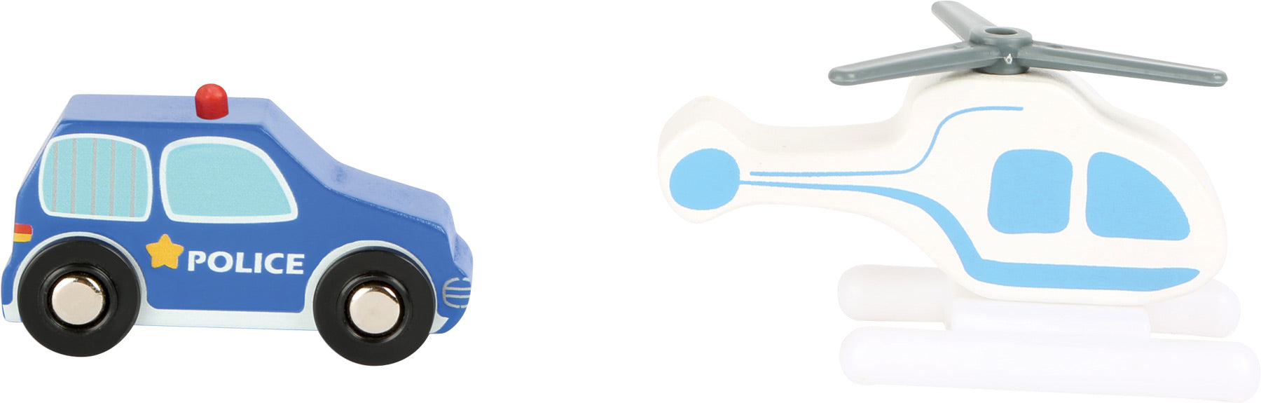 Hier ist was los! Auf dieser Polizeiwache aus der small foot world-Spielwelt ist Action garantiert! Die Kombination aus FSC® 100%-zertifiziertem Holz und stabilen Kunststoffelementen bietet jede Menge Zubehör. Mit Hubschrauberlandeplatz, Rampe zu den Parkplätzen und Gefängniszelle! Also auf zum ersten Einsatz: Rase mit dem Polizeiauto die Rampe herunter, lasse den Hubschrauber von seinem Landeplatz abheben und jage den Dieb! Eine wilde Verfolgungsjagd quer durchs Kinderzimmer beginnt, aber am Ende landet der Räuber immer da, wo er hingehört: in der Gefängniszelle! Die Polizeiwache lässt sich toll mit den anderen small foot world-Produkten kombinieren und garantiert spannenden, abwechslungsreichen Spielspaß!