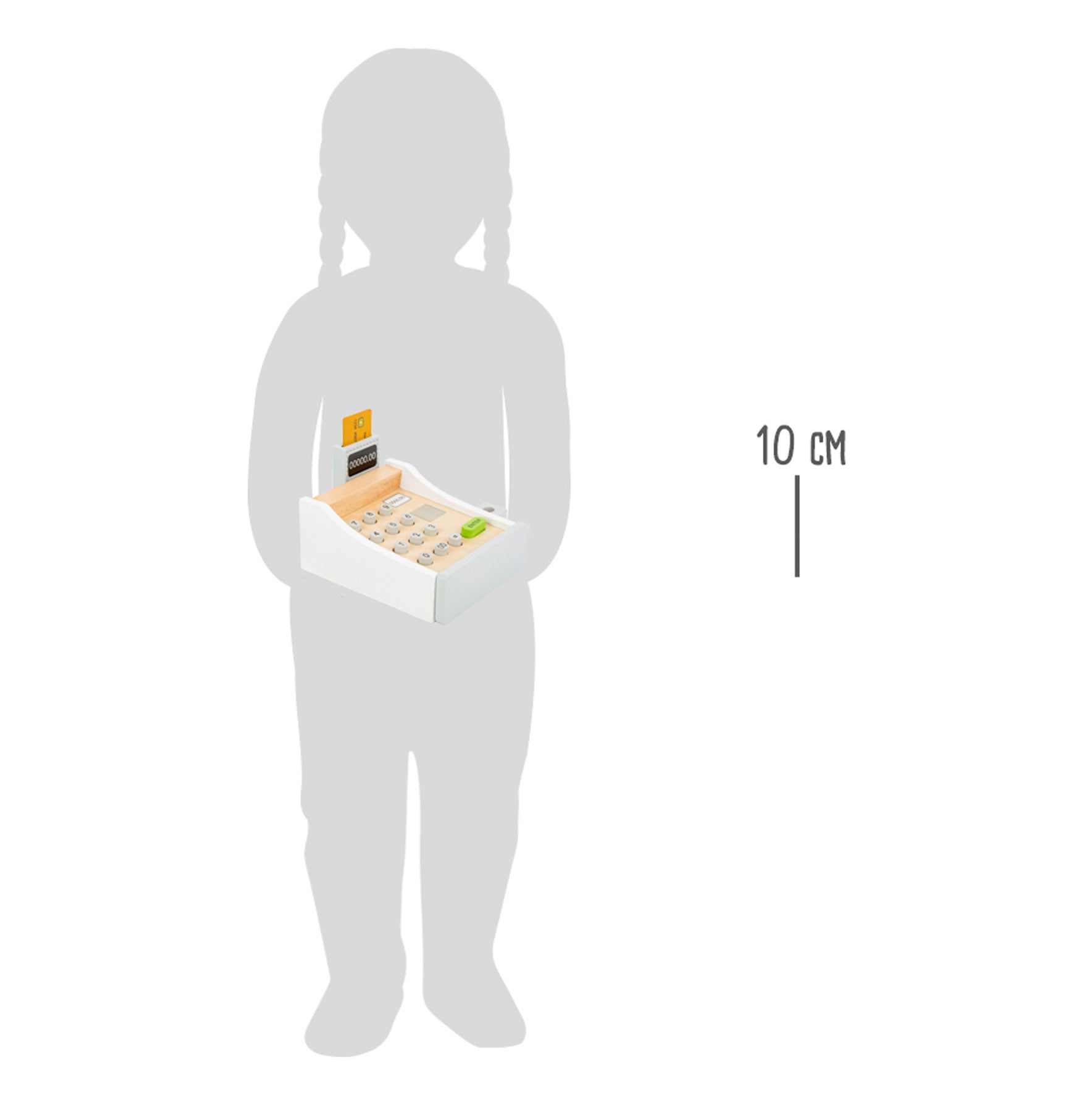 Es klingelt in der Kasse! Mit der Spielkasse aus Holz wird der Kaufmannsladen zum echten Einkaufserlebnis. Scanner, Kartenlesegerät, Spielgeld und Kreditkarte aus Holz sorgen für realitätsnahes Kassieren. Über die Tastatur können Preise direkt eingegeben werden – ideal, um spielerisch den Umgang mit Geldbeträgen und Preisen zu erlernen.