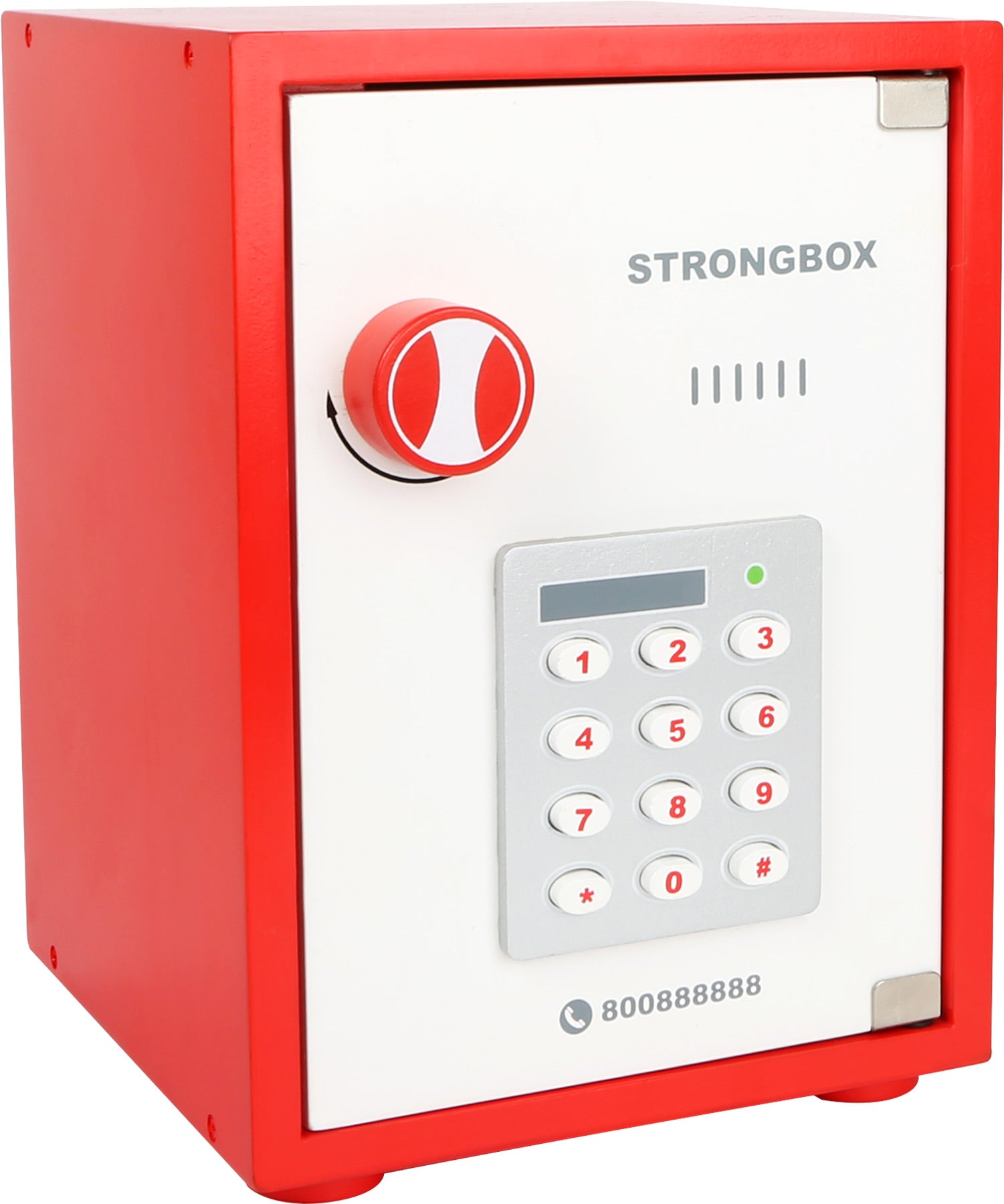 Banker und Bankräuber aufgepasst! In diesem Tresor aus robustem Holz sind die Schätze der Kleinen sicher verwahrt.