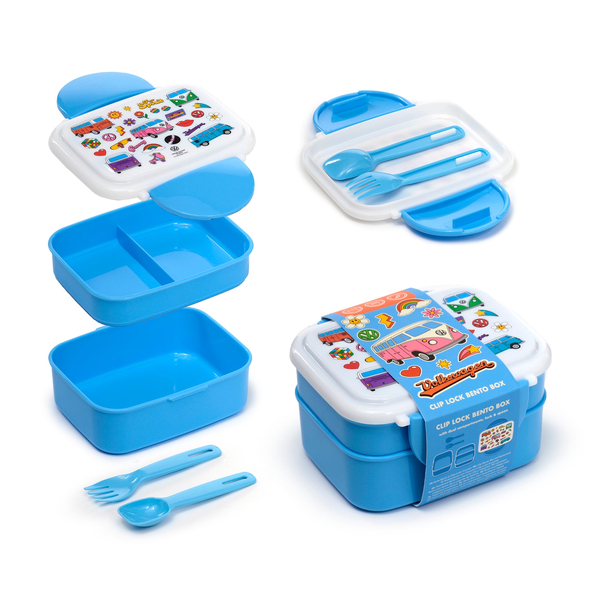 Volkswagen VW T1 Bus Retro Stapelbare Lunchbox mit Besteck & Clipverschluss | Offiziell Lizenziert